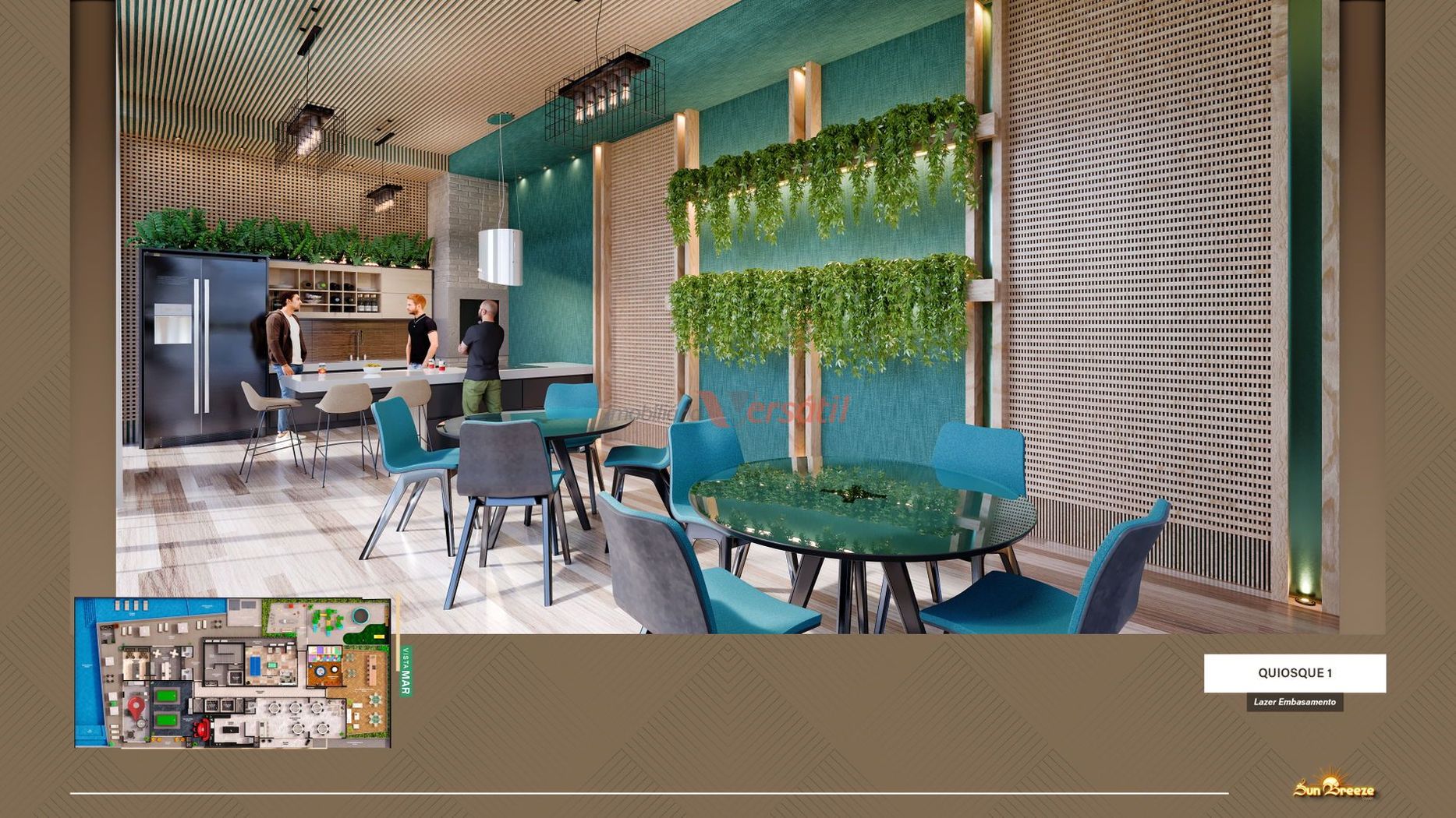 O apartamento oferece três suítes e duas vagas de garagem, com ambientes amplos e bem distribuídos. A planta contempla living integrado, lavabo, cozinha, área de serviço e sacada com churrasqueira, proporcionando conforto e praticidade para o dia a dia. Entre os diferenciais estão gás individual, interfone, internet e circuito interno de TV. Os acabamentos incluem porcelanato e rebaixo em gesso, reforçando o padrão elevado de qualidade.