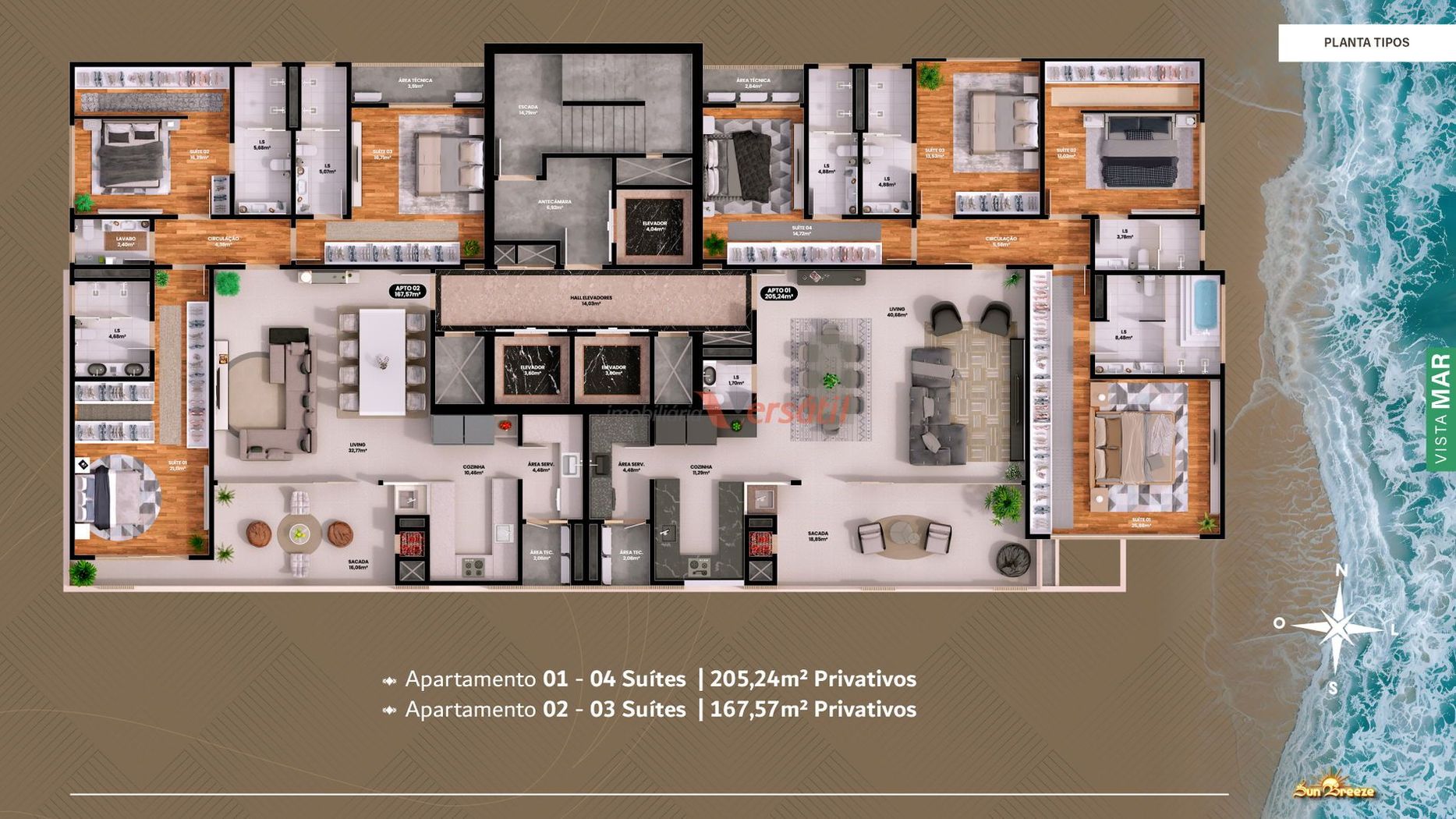 Este elegante empreendimento em pré-lançamento está localizado na Rua 288, nº 186, no bairro Meia Praia, em Itapema – SC, com posição solar frente sul e a apenas 421 metros do mar. A previsão de entrega é para março de 2029, e o grande destaque é sua localização frente ao mar, garantindo vista privilegiada e um estilo de vida exclusivo no litoral catarinense.