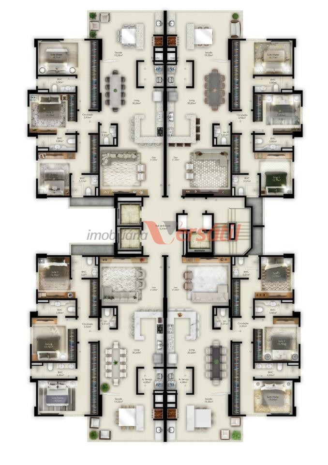 4 apartamentos por andar