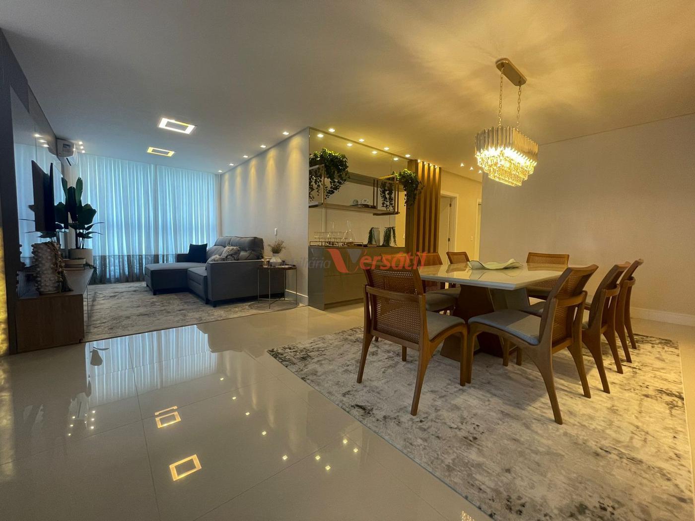 Com 3 dormitórios, sendo 3 suítes, possui 4 banheiros, 3 vagas de garagem, 3 salas, encontra-se mobiliado.