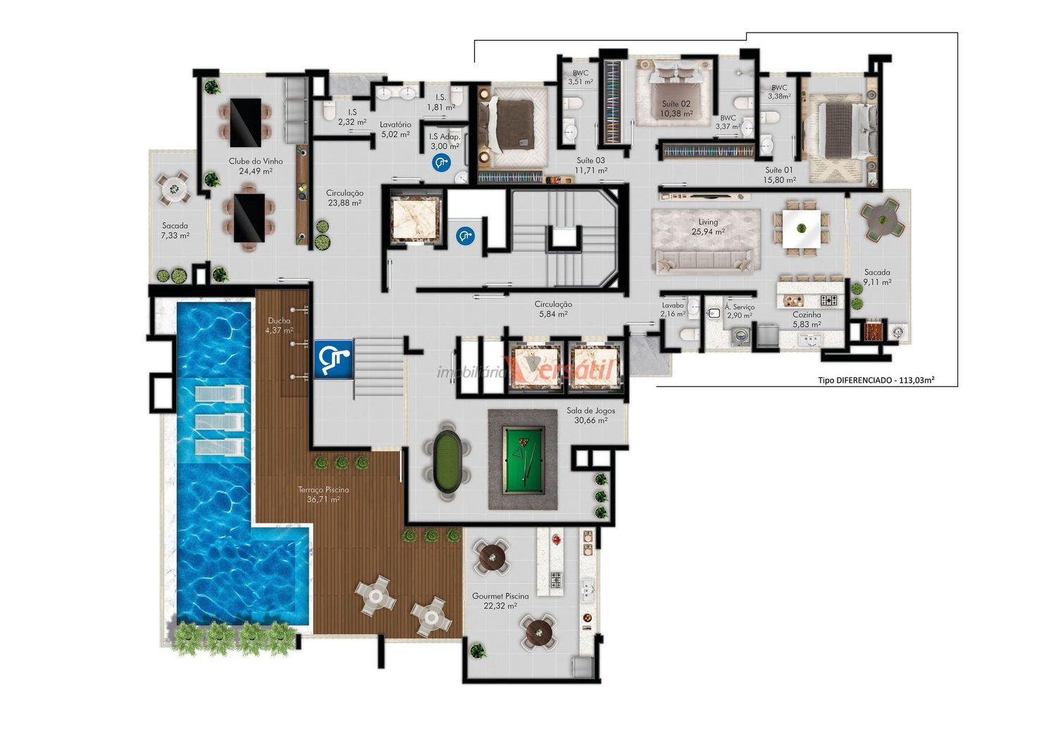 Tipo 3 com 3 suítes + Lavabo