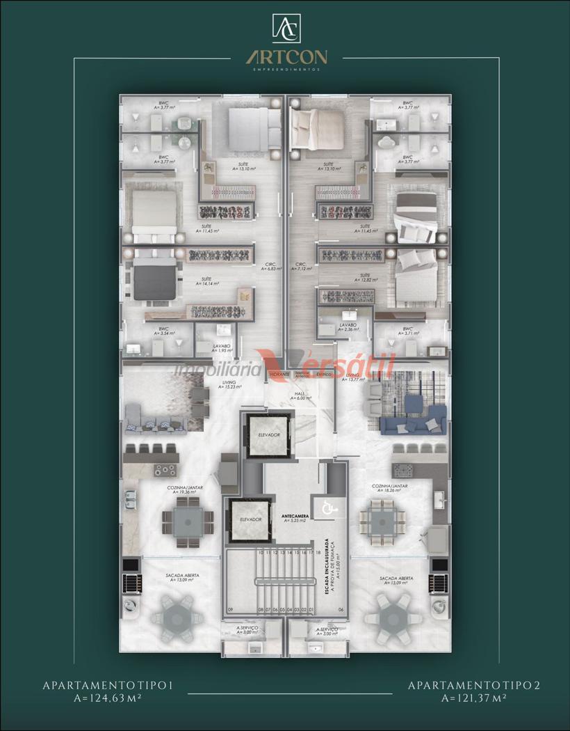 02 elevadores sendo 01 social e 01 de serviço