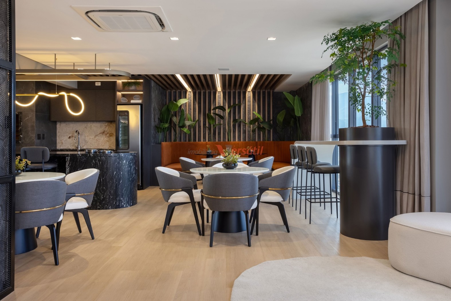 • Salão de festas totalmente mobiliado, decorado, equipado e climatizado.