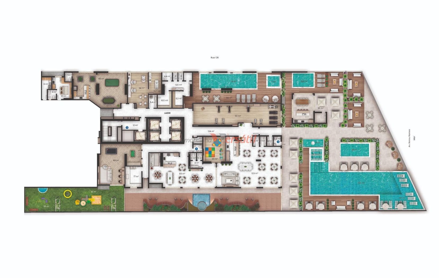 - Lazer Aquático Impecável: Piscina Adultos, Piscina Infantil, Piscina Coberta, Piscina Climatizada, Prainha, Jacuzzi, Bar Molhado.