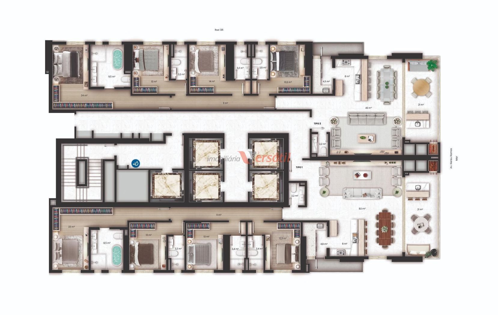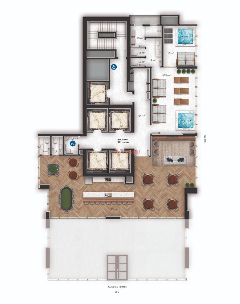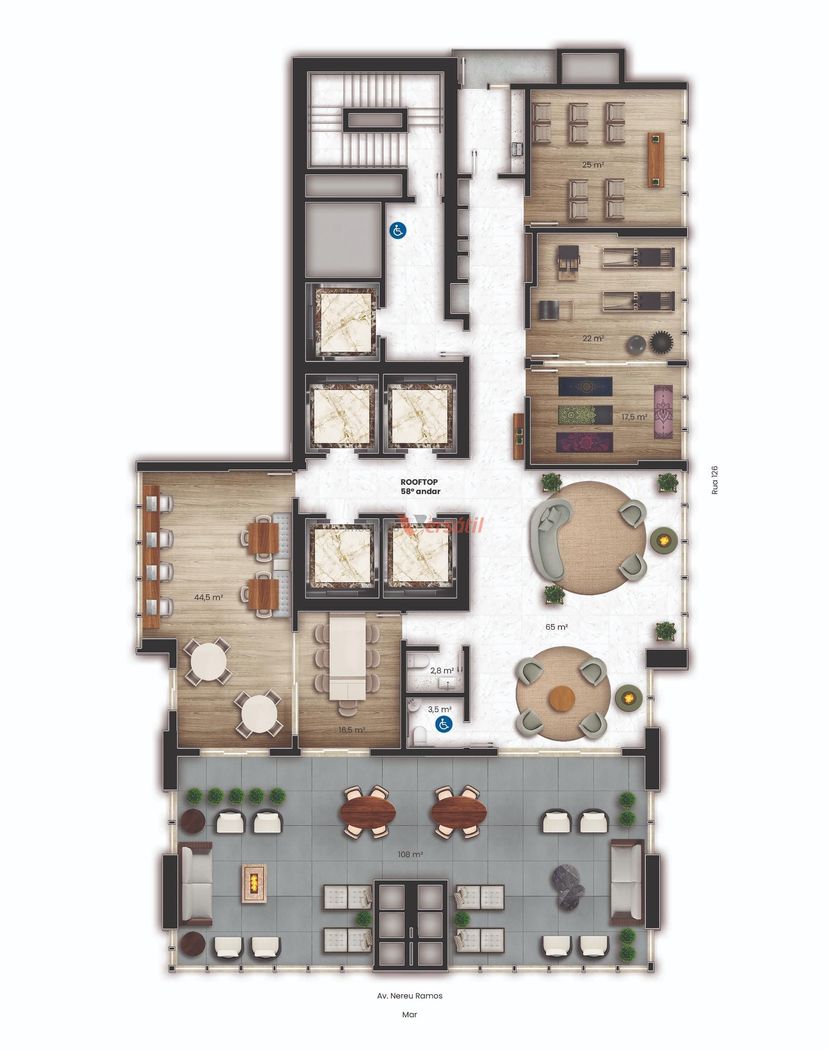 - Saúde e Bem-Estar: Academia, Pilates, SPA, Sauna, Sala de Massagem, Espaço Zen.