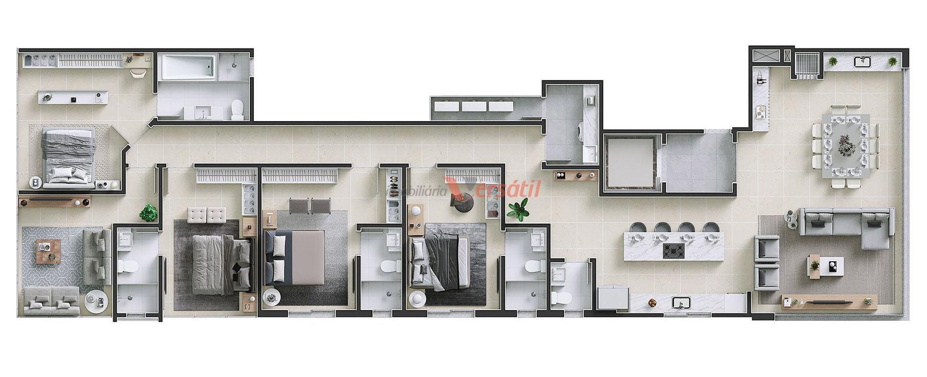 Tipo 1 e 2 com 04 suítes + lavabo