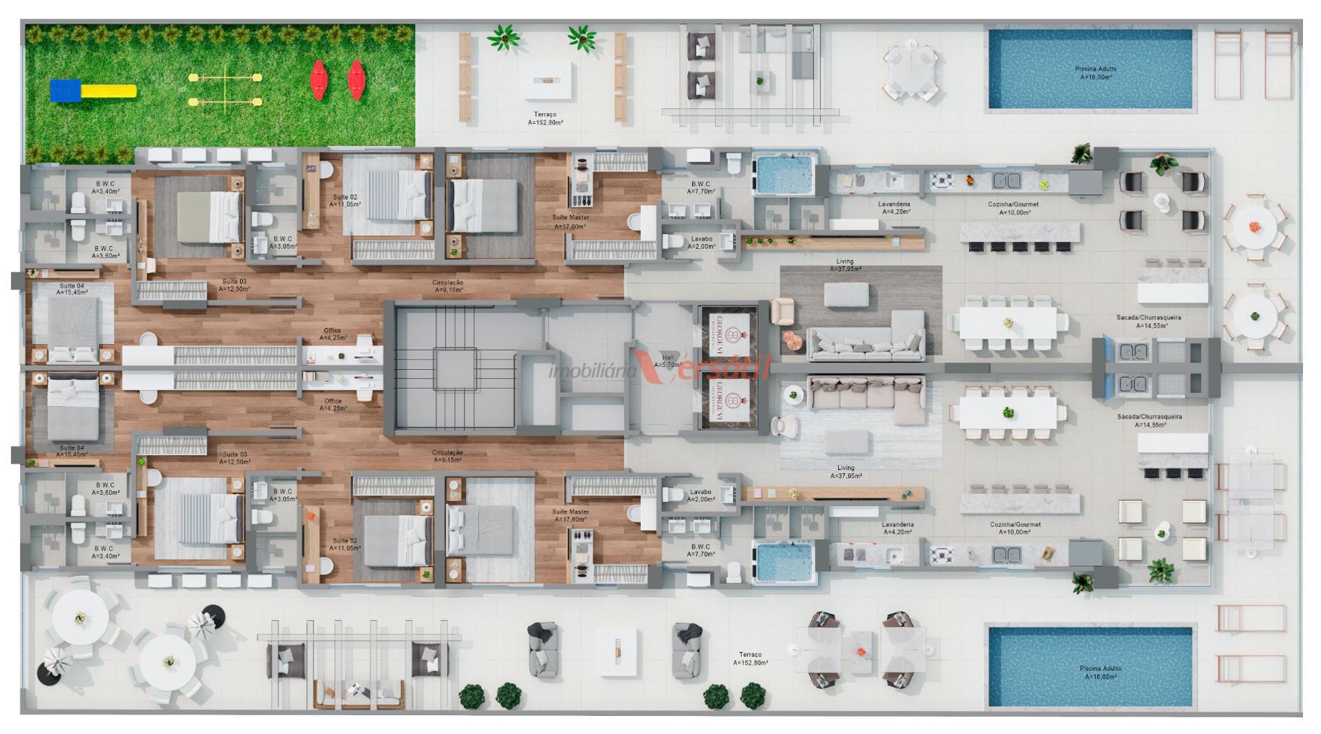 Mais de 1.300 m² de lazer coberta e descoberta