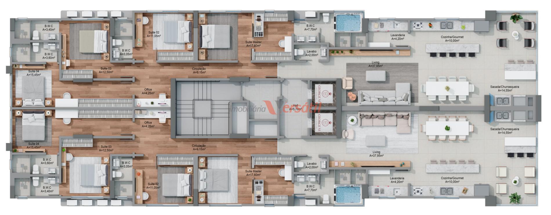 01 Suíte master de 26m² com closet e hidromassagem
